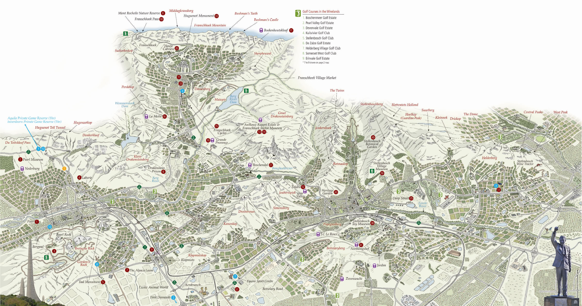 This reserve, perched on the top of the mountain, is part of a UNESCO-declared Cape Winelands Biosphere Reserve with breathtaking views and fauna and birding to match. There are a number of set trails, from an easy two-hour trail to a strenuous seven-hour trail that takes you up to 1575 metres. Remember to purchase a permit and map in Franschhoek from the Huguenot Museum Shop, Franschhoek Tourism Office, Protea Hotel or Winelands Experience. Location: Top of Franschhoek Pass on the left Information: www.montrochellehiking.co.za Tel: 021 876 2861 Price: small fee