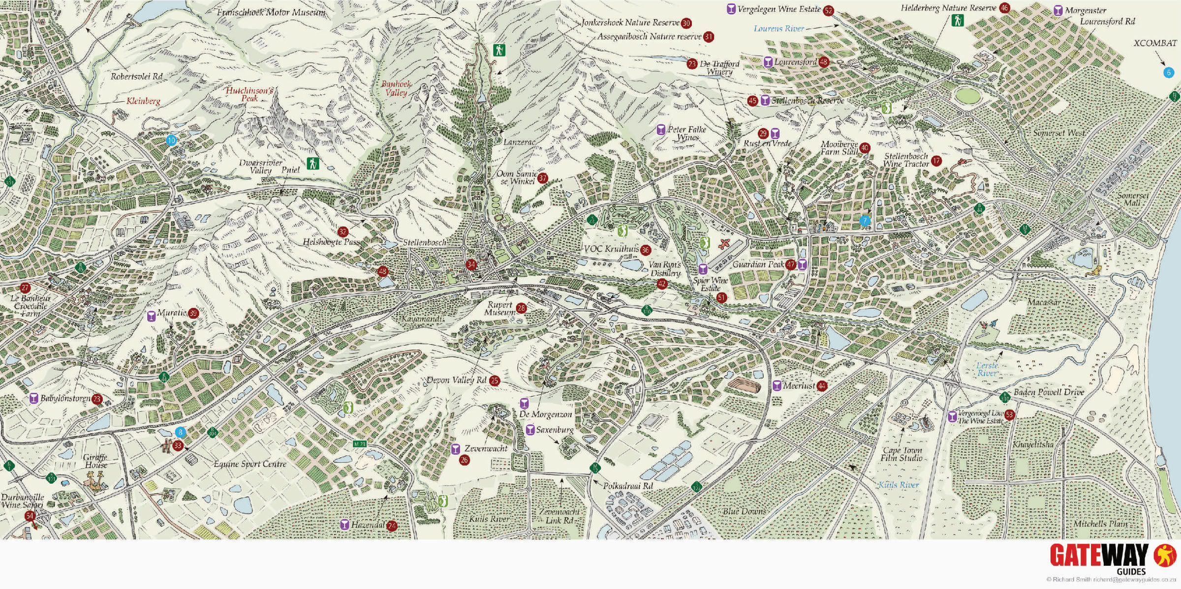 Just above Stellenbosch is a deep valley flanked by Jonkershoek Mountain on the left and Stellenboschberg on the right. This valley was named after Jan de Jonkheer who was granted the use of the land by Simon van der Stel in the 1600s. Today, this area is run by CapeNature. Part of the valley is under plantation with numerous trails and forestry roads; the rest is nature at its best with peaks, valleys, waterfalls, rivers and Afromontane forests. The main attractions are hiking and finding a mountain pool for a well-deserved swim. Location: 10 km from Stellenbosch up the Jonkershoek valley Information: www.capenature.co.za/reserves/jonkershoek-nature-reserve/ • Tel: 021 483 0190 Price: small fee