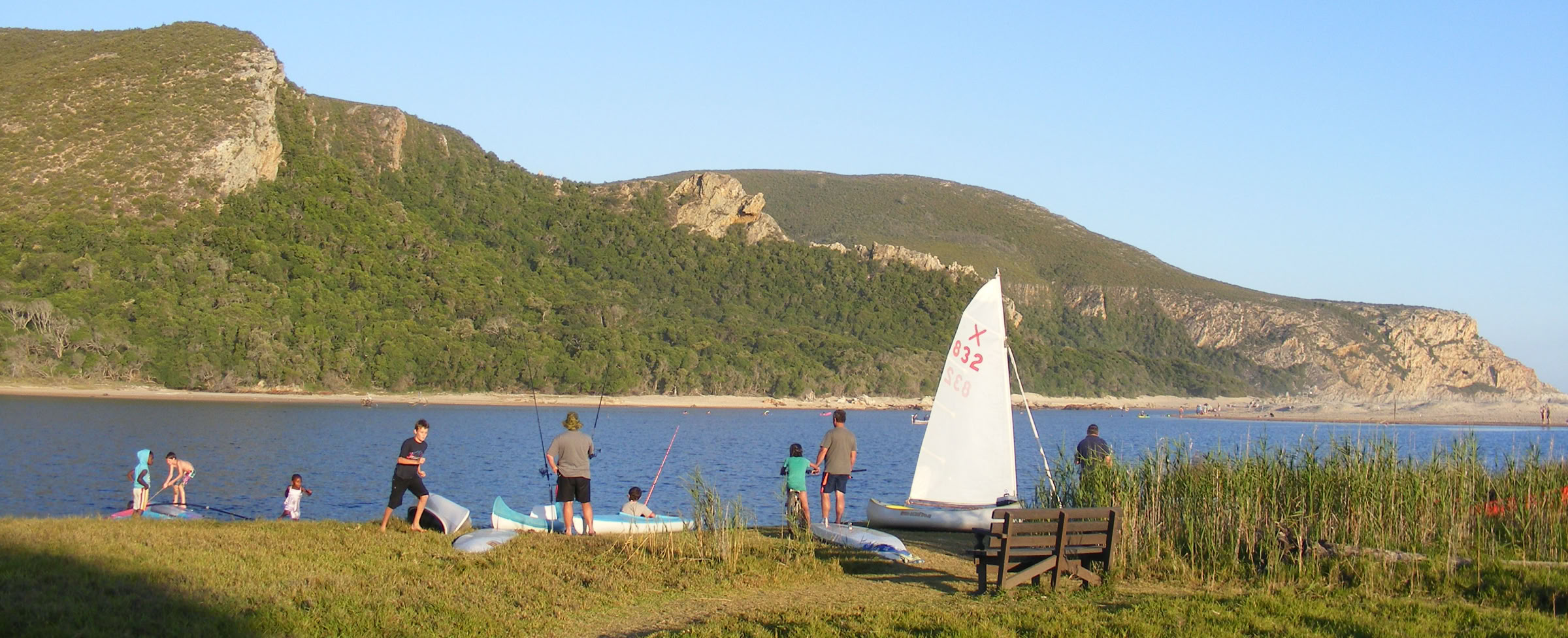 Nature’s Valley lagoon with Pig’s Head in the centre and the point on the right.