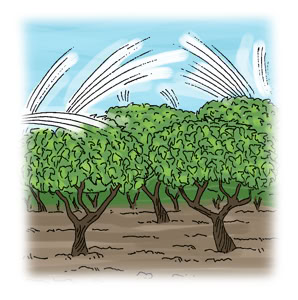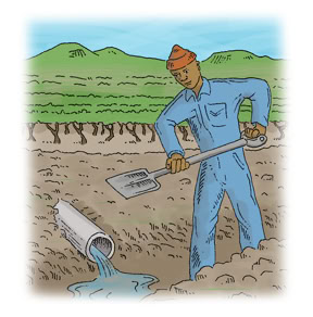 Soil is prepared before winter. Sown cover crops are grown. Contouring, piping and ditches are constructed or inspected. Biological control methods are used to eliminate undesirable insects.