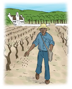 At this time, released employees of the Company, called free burghers, were given small plots to farm in order to supply the Company. Most of these burgers had their own vines. The life of a free burgher was not easy and many went back to the service of the Company. The arrival of 200 slaves in 1658 not only altered the demographics of the Cape but also helped take the farmers and the Company to a new level. All the grapes at the Cape were used as table grapes until Van Riebeeck, in 1659, made the first wine at the Cape. It was not the best-tasting wine but it was wine made by his own hands, which pleased him immensely.