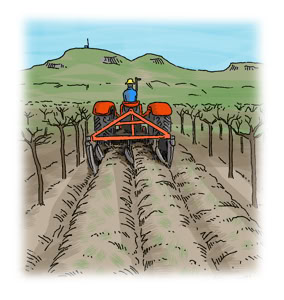 Weather permitting, cleaning and ploughing takes place around the vines. Blocks are planned and laid out for new vineyards. Gaps of missing vines are filled in a year after planting the vineyard.