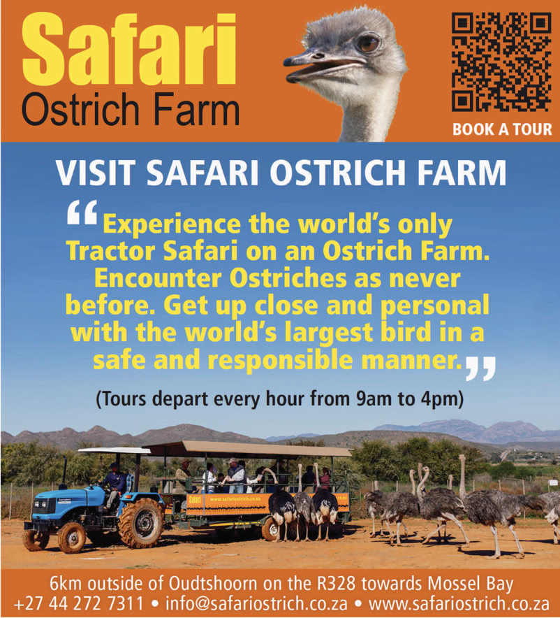 Added to these old attractions, many moretourism-related businesses over the years have come on board to enrich visitors and add variety. These have come mainly in the form of animal encounters, game reserves, wine routes and outdoor pursuits. Oudtshoorn is well placed for day trips to the surrounding areas such as Cango, Rust en Vrede Waterfall and Meiringspoort.