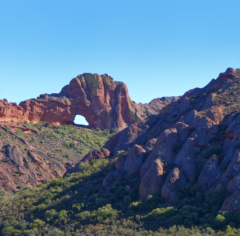 Because the water flow was slow, fine-grained particles managed to settle on the bottom, forming the mudstones and shales we see today. Most ofthe western Klein Karoo valley is made up of what we now call Bokkeveld shale. There are three other notable rock formations of interest, that can also be seen in the valley, each depicting another geological event.Rooikrans (Redstone Hills)was formed after the great lava outpourings in the Karoo 180 million years ago, which brought large-grained sands, stones andpebbles, due to high energy water flow, into the valley.