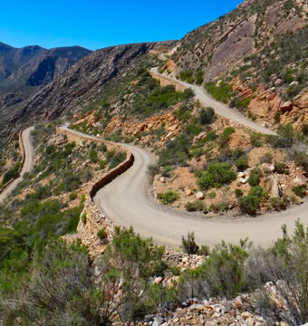 The Klein Karoo has the highest concentration of mountain passes in South Africa. Most of these passes can be navigated using a normal car on tarred or well-maintained gravel roads.