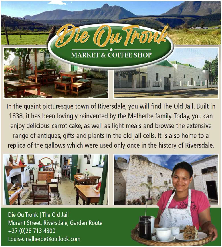 With The Calitz’ ever-growing family, the town became known as ‘Calitz Dorp’. The settlement became a kerkdorp in 1873. Over the years, the town grew mainly on the back offarming wine, brandy, tobacco, wheat, vegetables and fruit. The town had its fair share of booms and busts; the booms included the ostrich feather boom and the busts as a result of excessive drought and epidemics. A railway line was built in 1924 to Oudtshoorn to help get the town back on its feet. Today, it is still a farming area but has attracted retirees and tourists withits beautiful setting, vernacular architecture, wine tasting and slow pace of life.