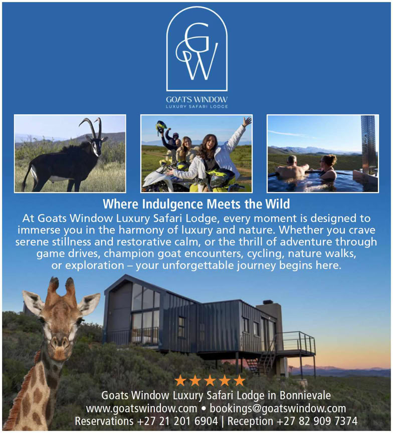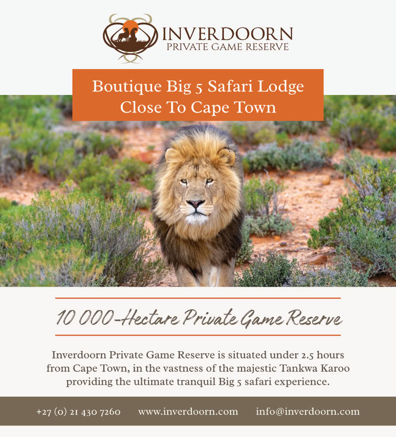 This is a premier Big Five game park, located just 2 hours from Cape Town. Besides game viewing, Aquila offers top luxury for both day visitors and overnight guests.